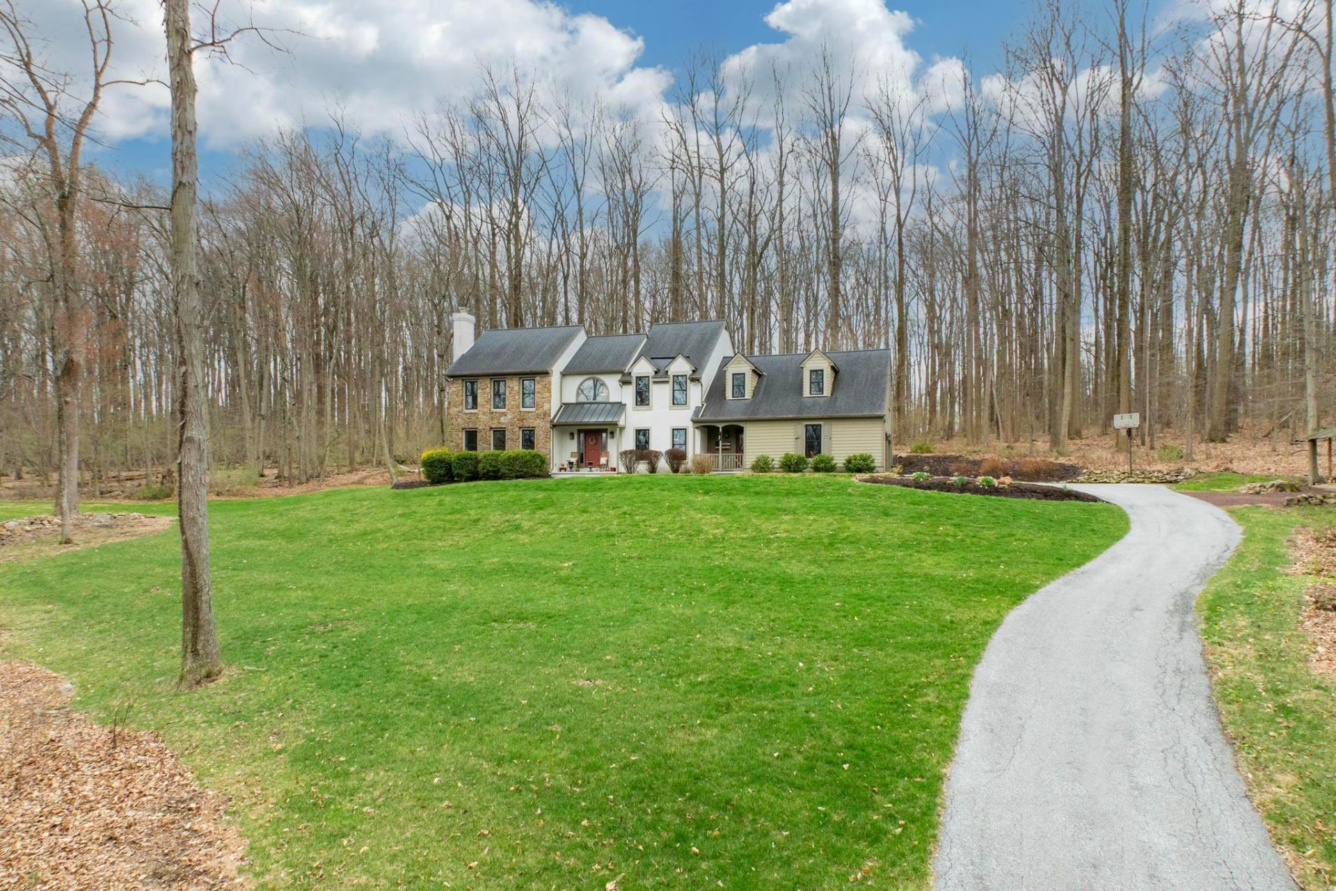 You’ll fall in love with this Glenmoore Semi Custom 4 Bedroom home on 5.2 acres, nested in a private community of 17 properties. As you enter, you’ll be welcomed by hardwood floors and a turn style wood staircase flanked by the living room w/wood burning fireplace and formal dining room. The impressive family room boasts vaulted ceiling w/ skylights, wood flooring, and a floor to ceiling real stone fireplace with wood stove insert. The large windows bathe this space in natural light while offering tranquil views of the surrounding landscape. The modern kitchen features a breakfast area, soap stone counter tops, farmhouse sink, wall mounted double oven, cook top and decorative iron pipe shelving over the coffee bar. The spacious laundry room is conveniently located on the main floor along with the recently updated powder room and a first-floor office. Upstairs, the primary suite provides for a relaxing retreat with walk-in-closets and en-suite bathroom w/soaking tub and glass enclosed shower. The three generously sized additional bedrooms share the double sink center hall bathroom. The third bedroom is huge and could be used as an upper great room. Outside, enjoy the peaceful setting of your private partially wooded lot, with room for a future pool or vegetable garden. The expansive backyard offers endless possibilities for entertaining or relaxing. Additional highlights include paver brick patio slate patio w/fire pit, genuine Pennsylvania field stone exterior, natural stone garden walls, replacement windows 2022 , New Septic 2026, New A/C Compressor, and the American Preferred Home Warranty for the buyers! The community HOA fee is $350 a year, and amenities include tennis and pickle ball courts, walking trails, and fishing pond. This serene setting offers tremendous privacy yet has the convenience of Shopping and Restaurants of Exton, and close to major routes- like PA turnpike & route 100. This Glenmoore Gem is a rare find!
